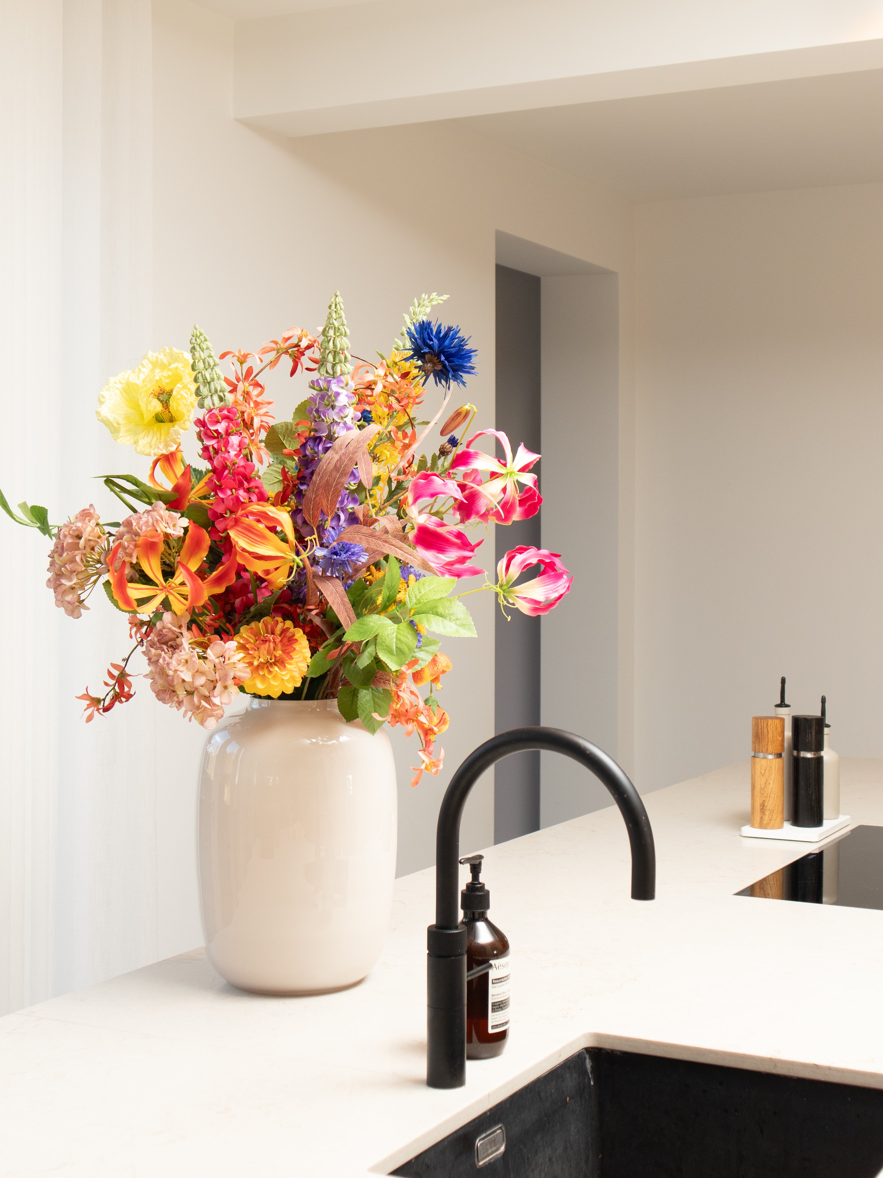Mijn zijden boeket straalt een rustige elegantie uit en trekt altijd complimenten. Perfect voor een lange levensduur zonder onderhoud.